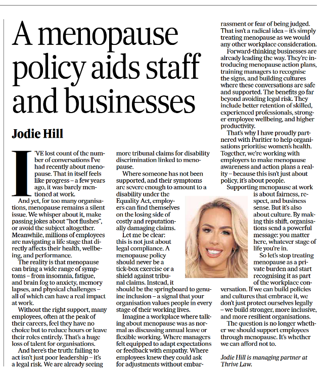 This News Letter article examines the latest budget’s impact on businesses and individuals, featuring a quote from Jodie Hill, Managing Partner at Thrive Law. Jodie offers her perspective on how the changes may affect SMEs and workplace dynamics.