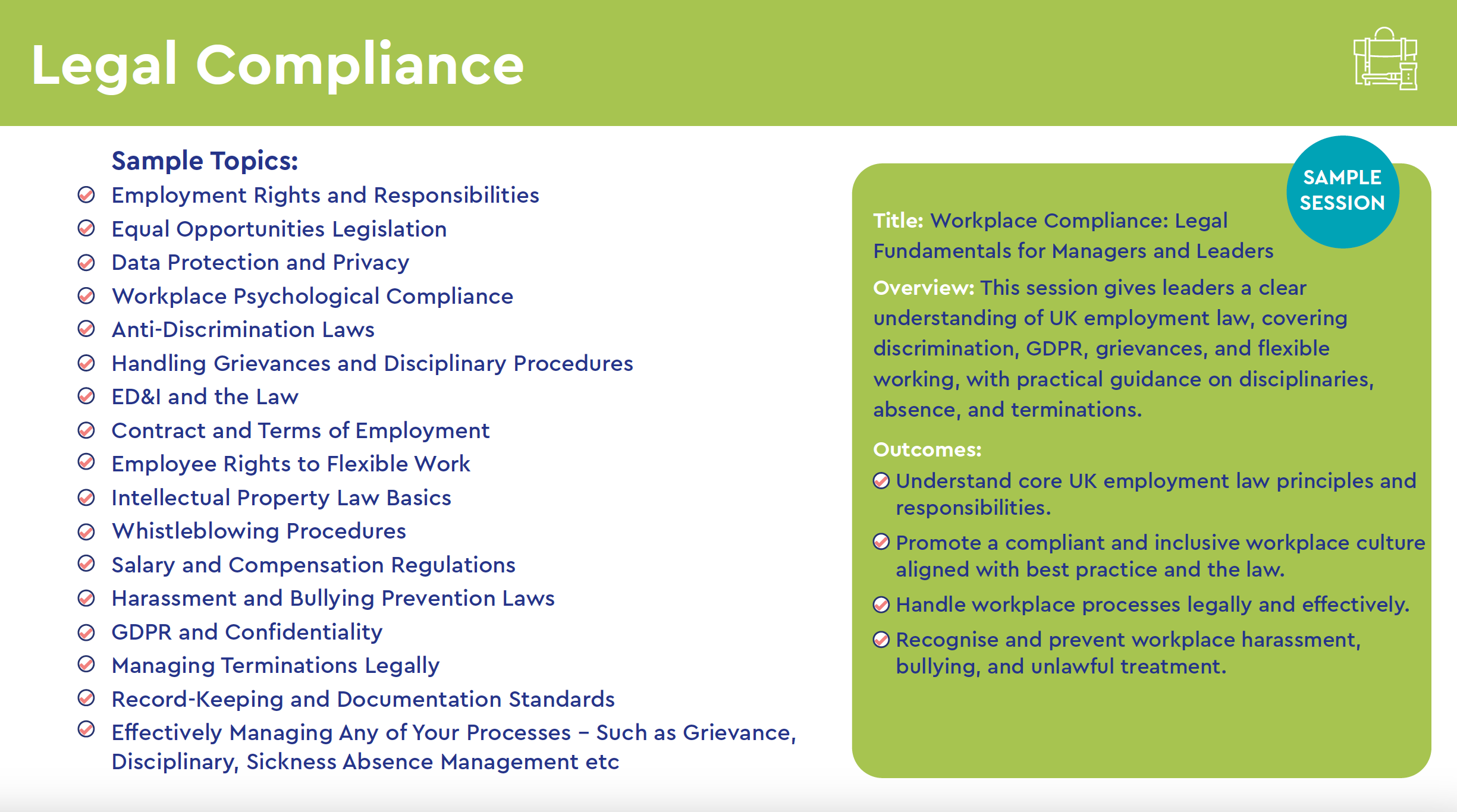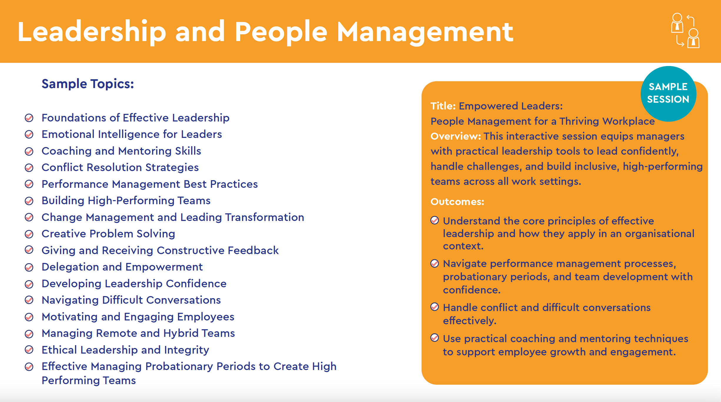 We don’t just deliver training, we support leaders and HR teams to build their team’s knowledge, confidence and capability across their workforce.